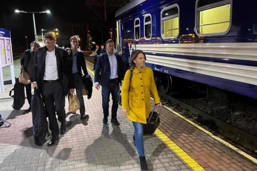 Из соображений безопасности о ее прибытии заранее не сообщалось, и бронированная машина с вокзала доставила Бербок прямо к Зеленскому в президентский бункер.