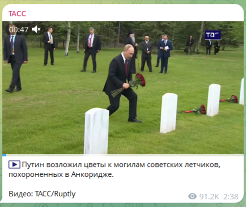 И Президент России, без участия своего американского коллеги, отдал долг памяти погибшим тогда советским пилотам на военном кладбище в Анкоридже.
