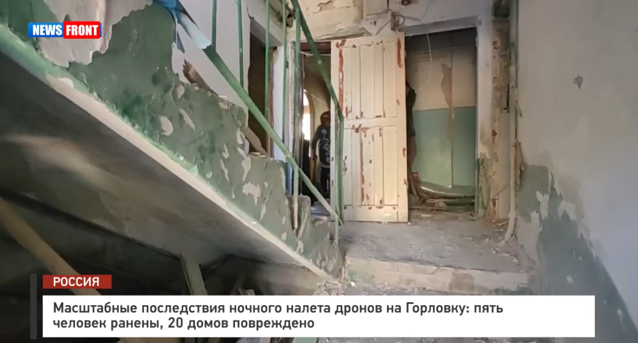 Девятнадцать многоквартирных домов серьезно повреждены в Горловке в результате массированного налета вражеских беспилотников этой ночью. Репортаж корреспондента News Front Георгия Медведева.