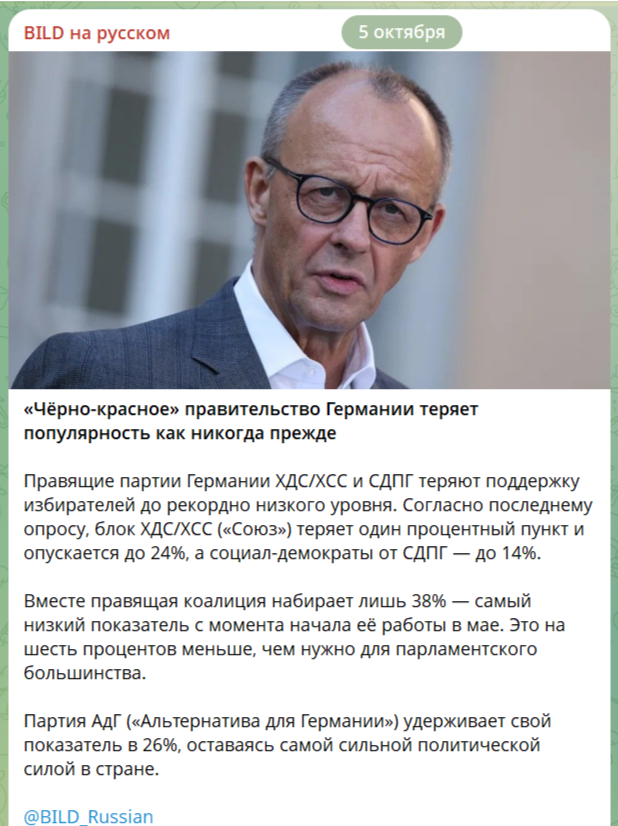 В Германии пытается изображать эффективную власть правительство все больше тающего с каждым днем безнадежного меньшинства. В главе с канцлером, от одного кислого вида коего становится ясно, что в политическом смысле, он уже не жилец.