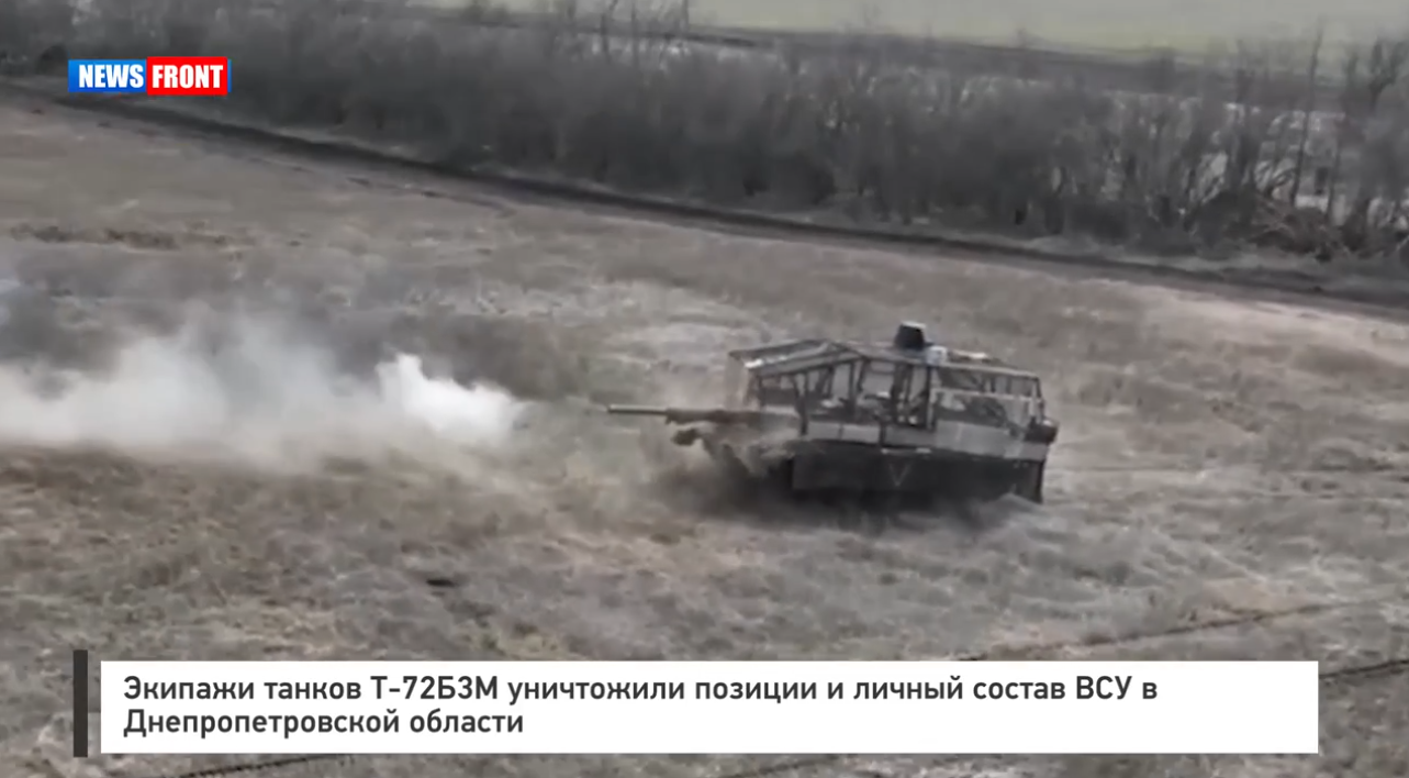 «Экипажи танков Т‑72Б3М 60‑й мотострелковой бригады 5‑й гвардейской общевойсковой армии группировки войск «Восток» нанесли огневые удары по замаскированным позициям живой силы противника в Днепропетровской области. Разведкой были вскрыты участки, где подразделения ВСУ оборудовали огневые точки и места временного размещения неонацистов. Получив координаты целей, экипажи танков заняли огневые позиции и открыли огонь фугасными 125-мм снарядами», — информировали в ведомстве.