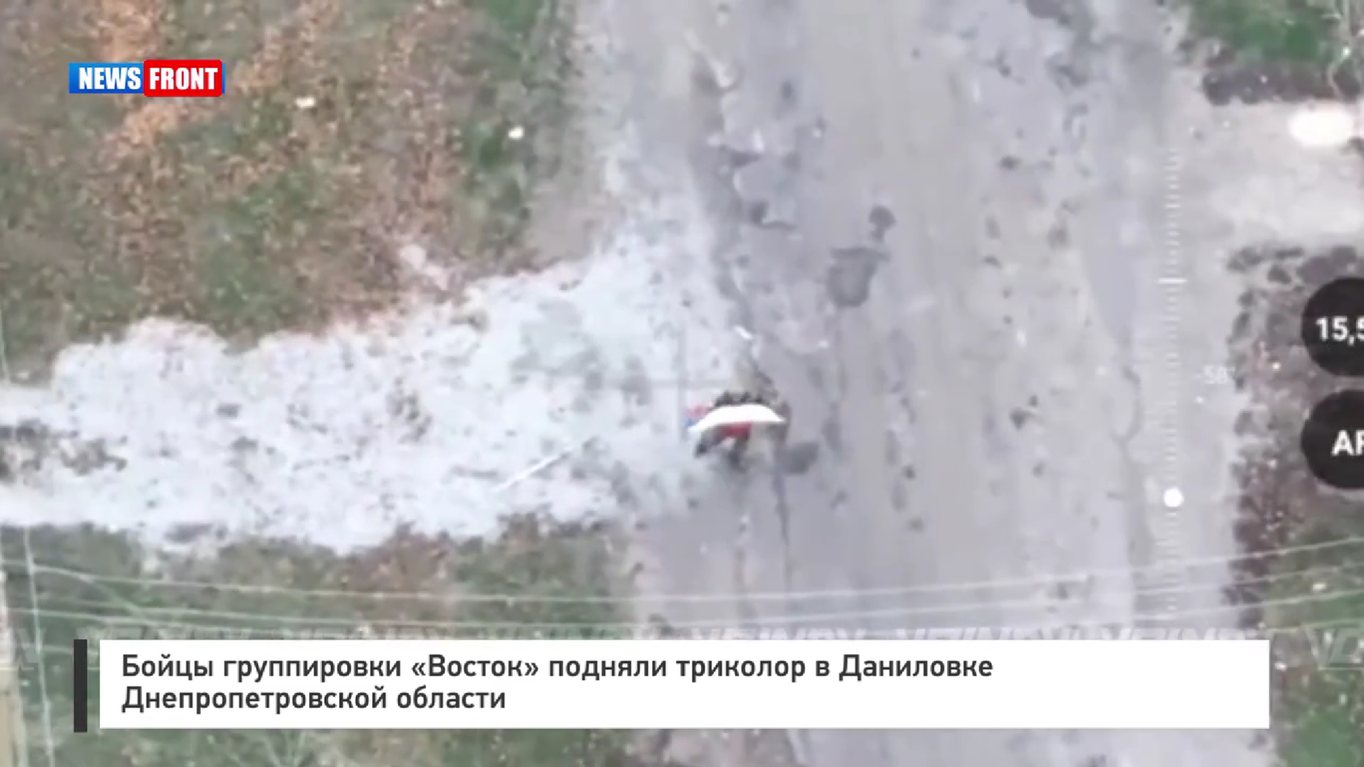 В доказательство успешному выполнению поставленной задачи боец соединения с позывным «Танцор» поднял Государственный флаг Российской Федерации на одной из улиц поселка.