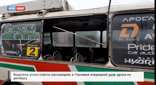 Водитель успел спасти пассажиров: в Горловке очередной удар дрона по автобусу – репортаж News Front